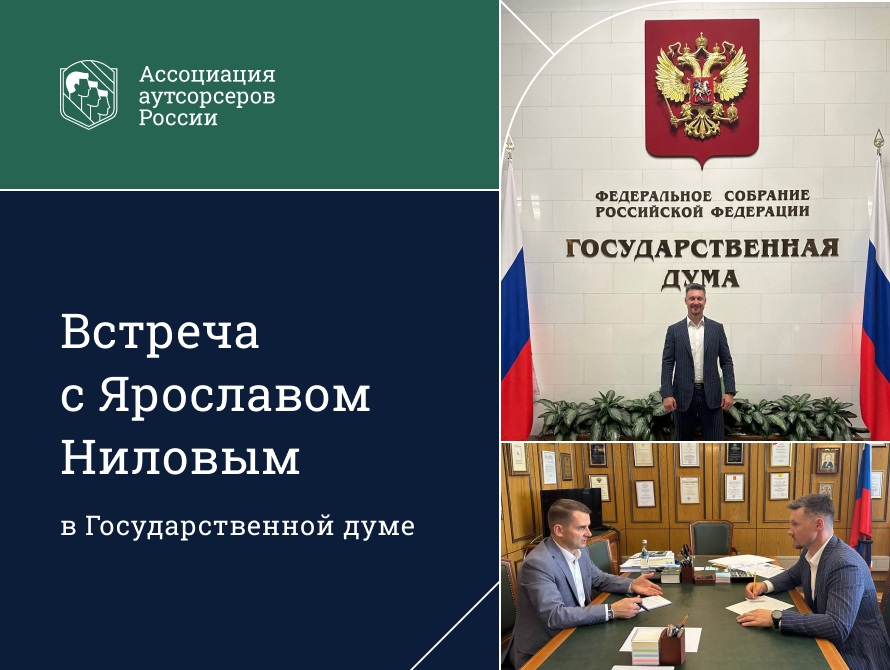 Президент Ассоциации аутсорсеров Дениса Решанова встречался с председателем комитета Государственной Думы Федерального собрания Российской Федерации по труду, социальной политике и делам ветеранов Ярославом Ниловым по вопросам трудоустройства ветеранов СВО.